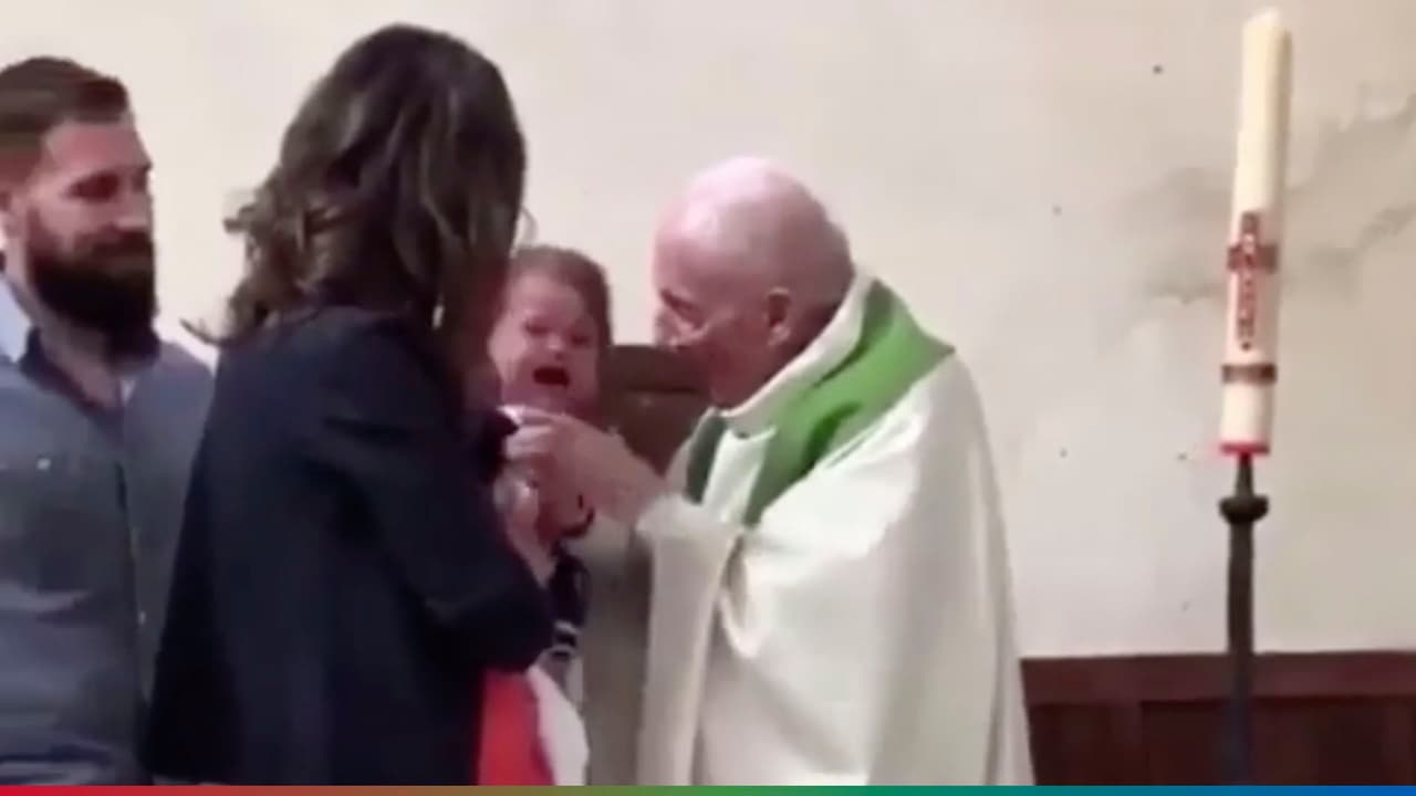 (Video) Sacerdote abofetea a bebé durante su bautizo causando el coraje de muchos