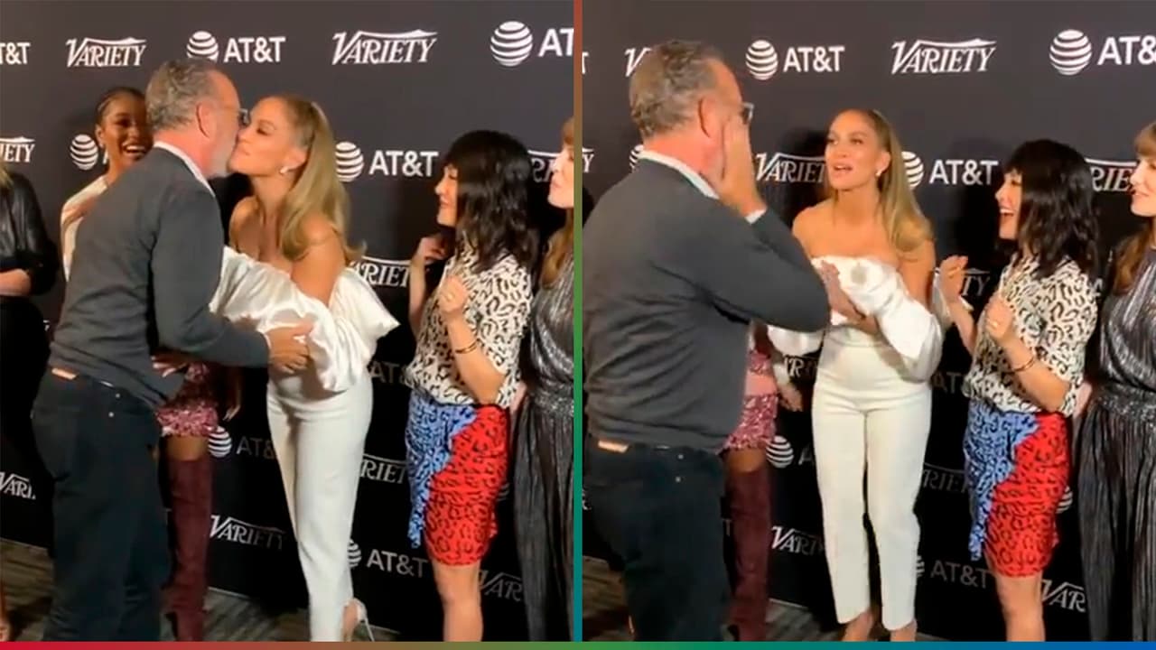 (Video) Se limpió la mejilla después de saludarla: Tom Hanks parece rechazar a Jennifer López