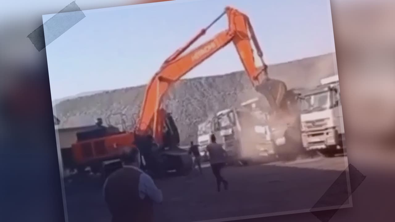(Video) Trabajador de la construcción destruye toda una flota de camiones en su primer día