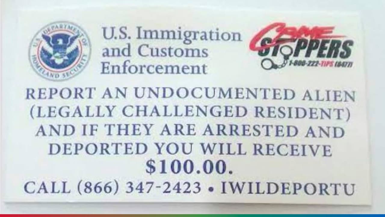 Volantes incitan a denunciar indocumentados a cambio de 100 dólares
