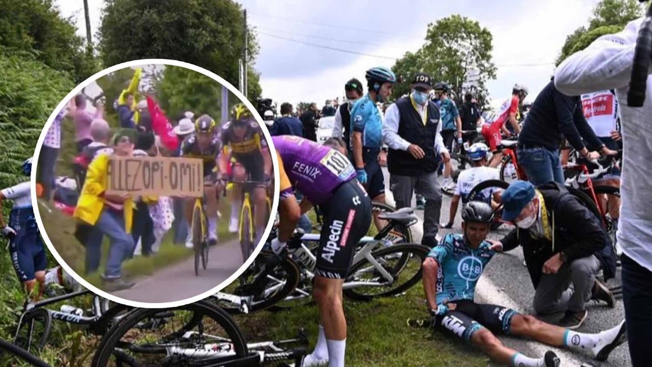 Espectadora causa tremendo accidente durante carrera de bicicletas del ‘Tour de Francia 2021’