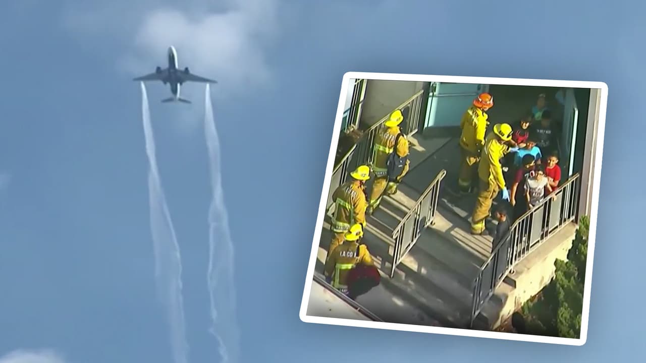 Avión deja varios heridos al arrojar combustible antes de aterrizar de emergencia en Los Ángeles