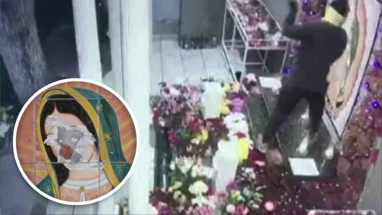 (Video) Hombre destruye a martillazos el rostro de una Virgen de Guadalupe y se da a la fuga