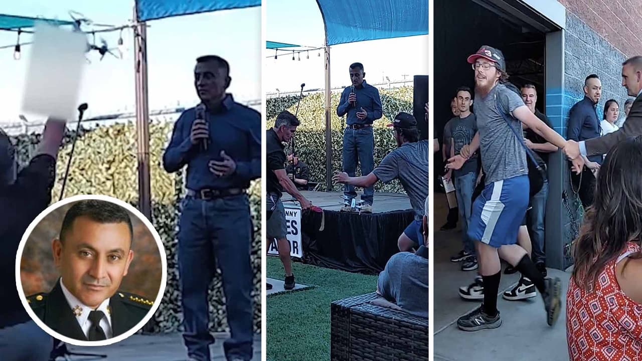 Manuel Gonzales III, sheriff de la ciudad de Albuquerque, realizaba un discurso cuando un artefacto volador, el cual llevaba adherido un juguete sexual, causó controversia en el público, y se rumora que el responsable es Tim Keller, actual alcalde demócrata.