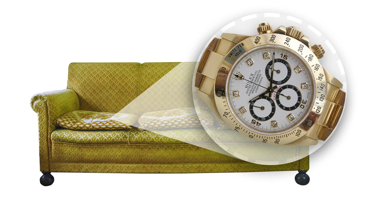 Compra sillón en una 'segunda' y encuentra en el un reloj incrustado de diamantes