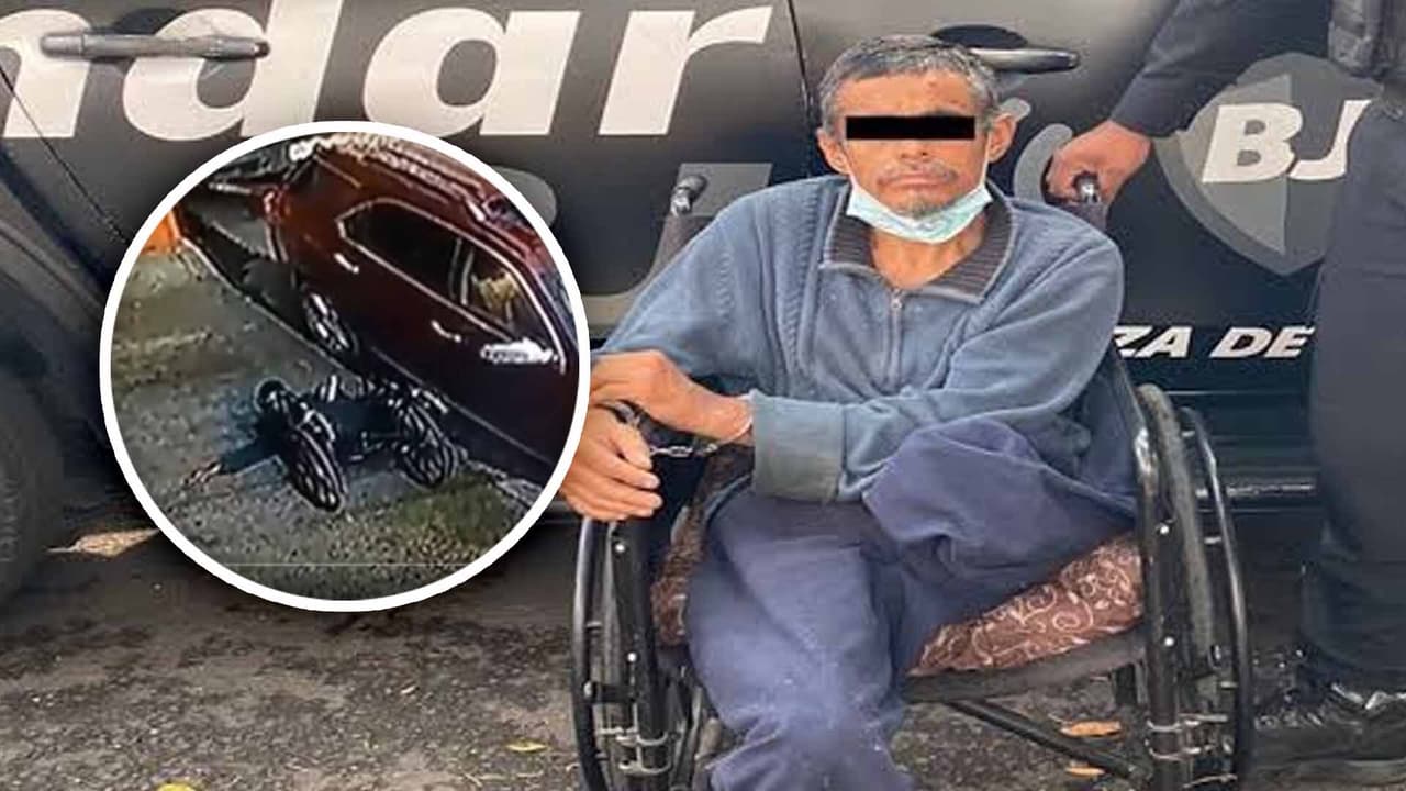 (Video) Hombre en silla de ruedas intenta robarse partes de un carro y se da un santo ‘madrazo’