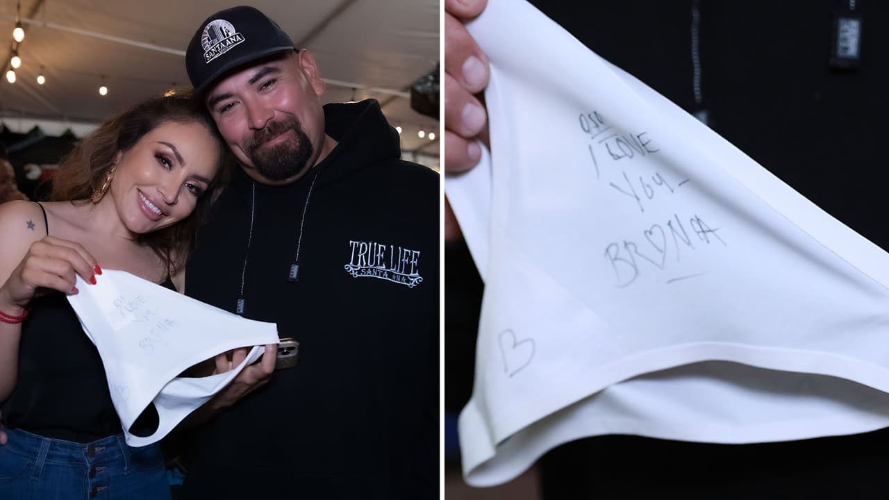 Durante un evento al sur de Los Ángeles, la locutora de El Free-guey se llevó tremenda sorpresa cuando un fanático le pidió que firmara una prenda de ropa interior femenina que él mismo le llevó.