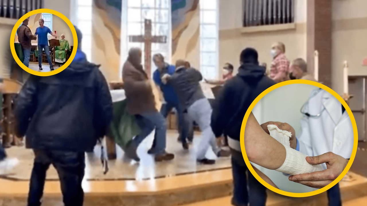 (Video) “Santa madrina”: 20 feligreses agarran a golpes a hombre que intentó pegarle a un sacerdote