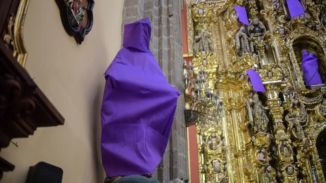 Debido a la ola de violencia contra el género femenino, las parroquias de San Cosme y San Damián en la colonia San Rafael de la Ciudad de México, taparon al menos 14 santas, colocando mantos morados sobre ellas.