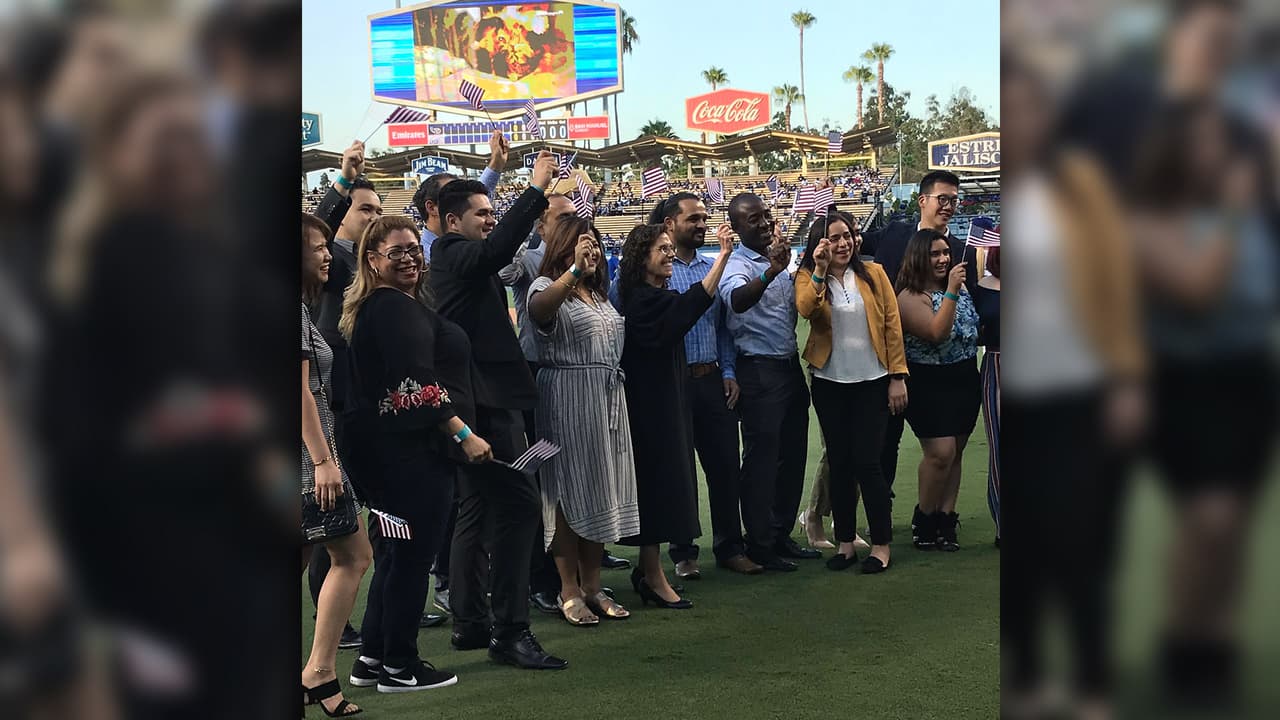 Inmigrantes se convierten en ciudadanos estadounidenses desde el estadio de los Dodgers