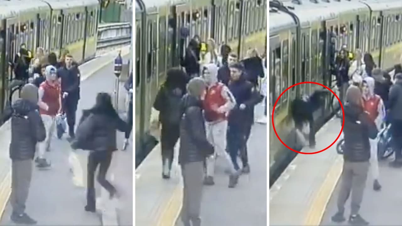 (Advertencia, imágenes fuertes) Mujer cae a las vías de un tren tras ser empujada por un joven