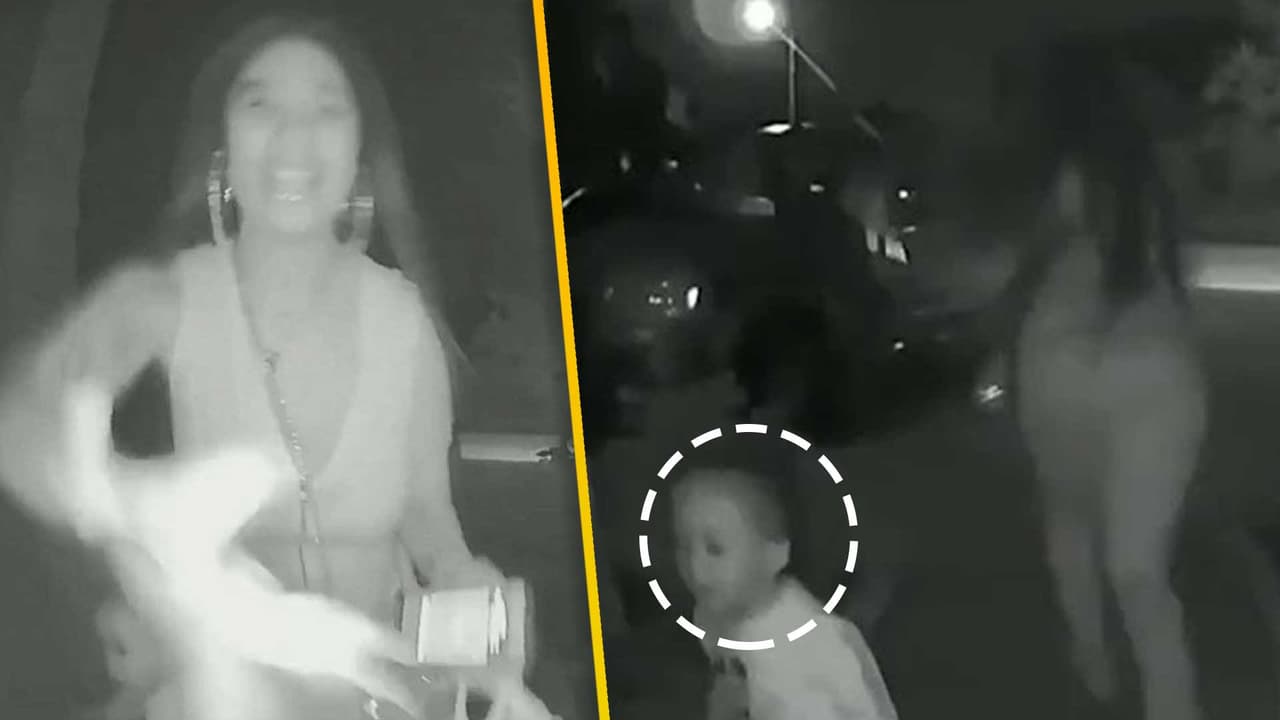 (VIDEO) Niñera deja abandonado a menor en la puerta de un extraño, toca el timbre y huye