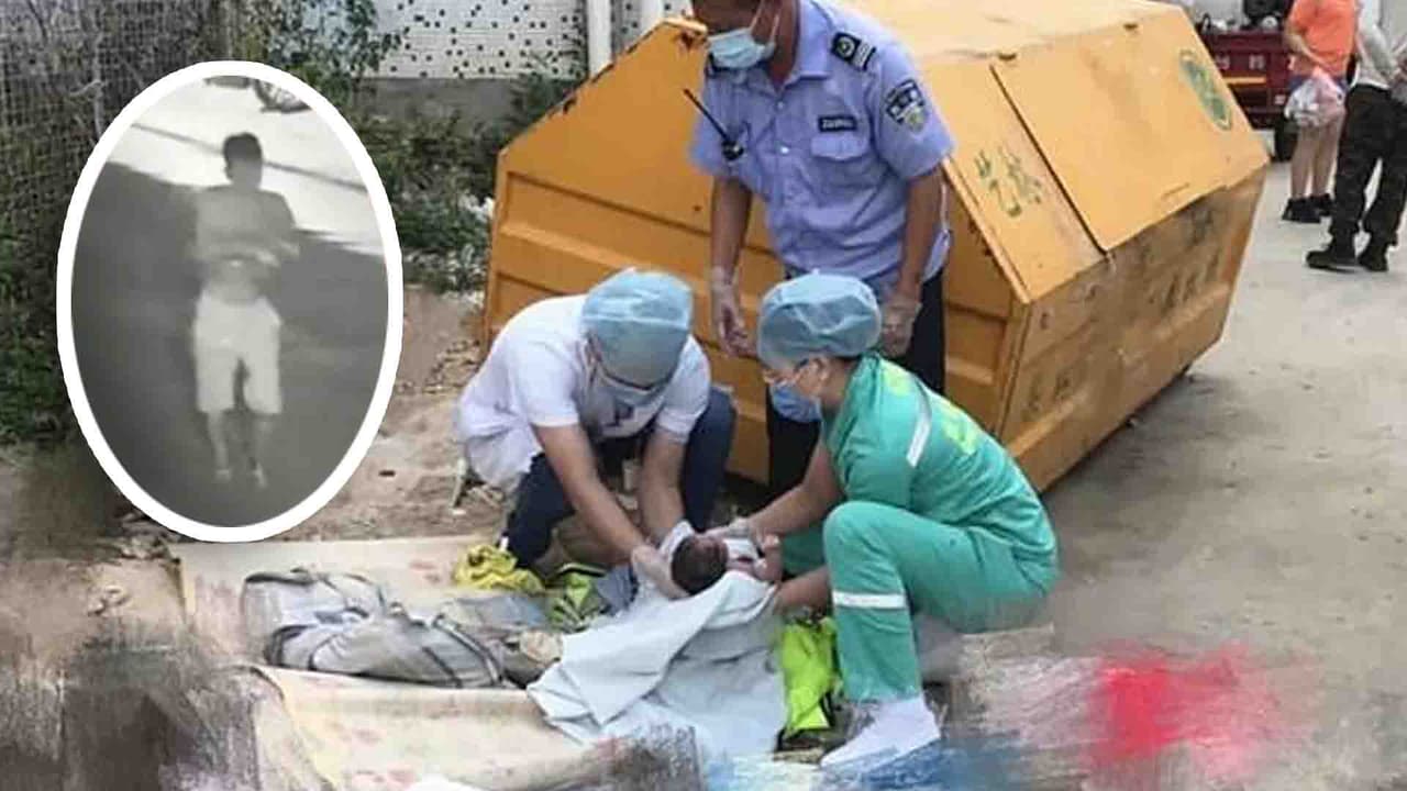 Una cámara de seguridad captó el triste momento cuando el padre arroja a la pequeña, de una semana de nacida, a un contenedor en Guangdong, China, pero un trabajador de limpieza la descubrió y afortunadamente le salvó la vida.