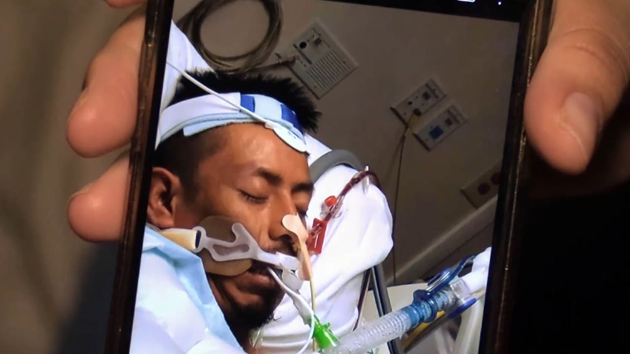 Su situación médica se agravó a tal punto, que los doctores se vieron obligados a someterlo a un coma inducido de dos meses, en donde se le gangrenaron sus extremidades.