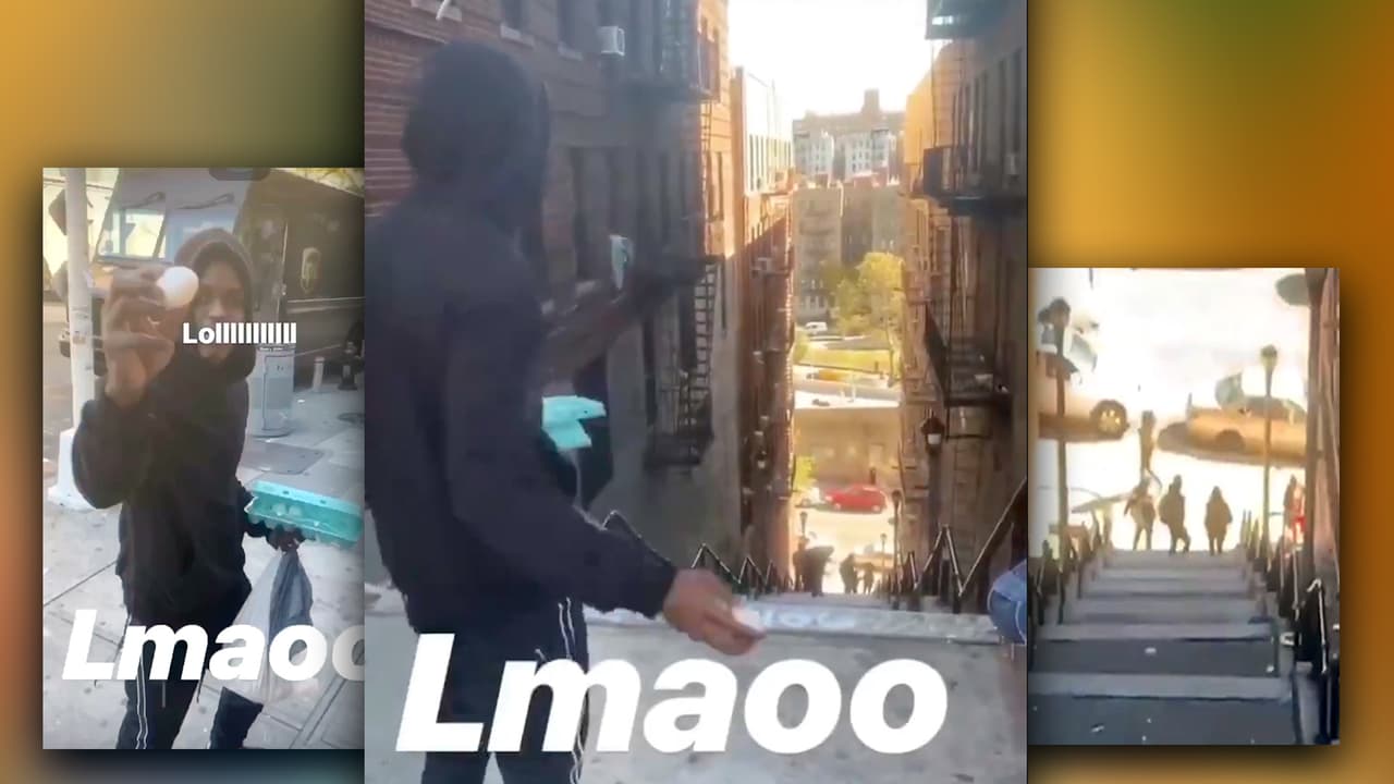 (Video) Avientan huevazos a los turistas que llegan a ver las escaleras donde se grabó el Joker