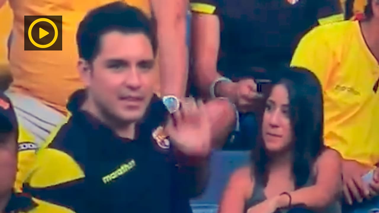 Después de ser captado dándole un beso a su pareja en un partido, el vato quiso hacer como que nada pasaba, pero sus acciones terminaron delatándolo. Descarga gratis Uforia App.