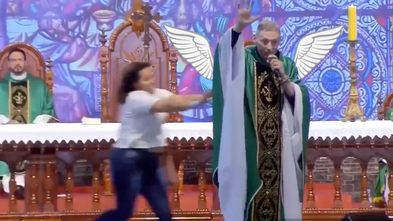 (Video) Mujer irrumpe en medio de una misa y empuja al sacerdote contra el público
