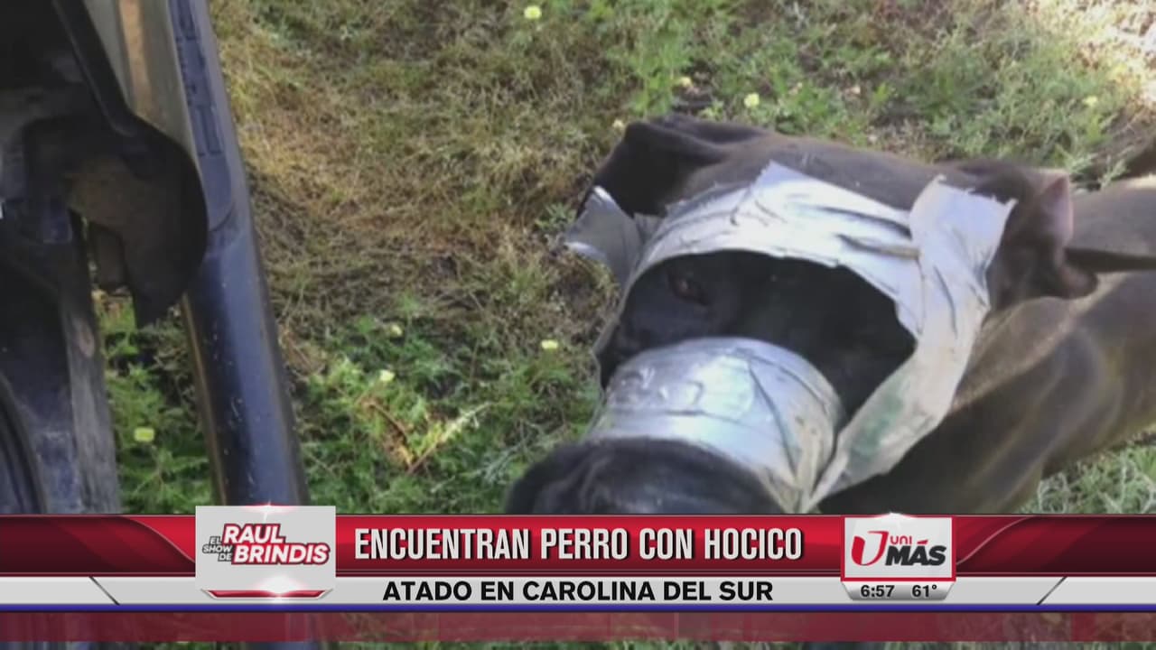 Encuentran perro con el hocico atado