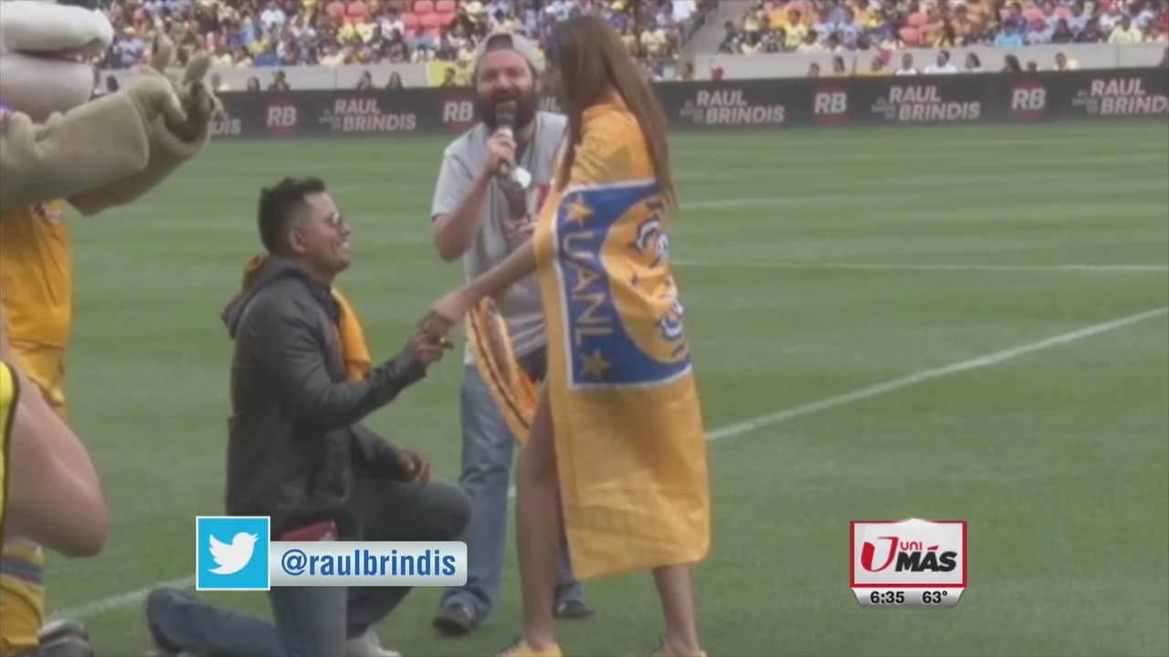 Antes del partido Tigres VS América en Houston, un aficionado propuso matrimonio a su novia frente a 22 mil personas.