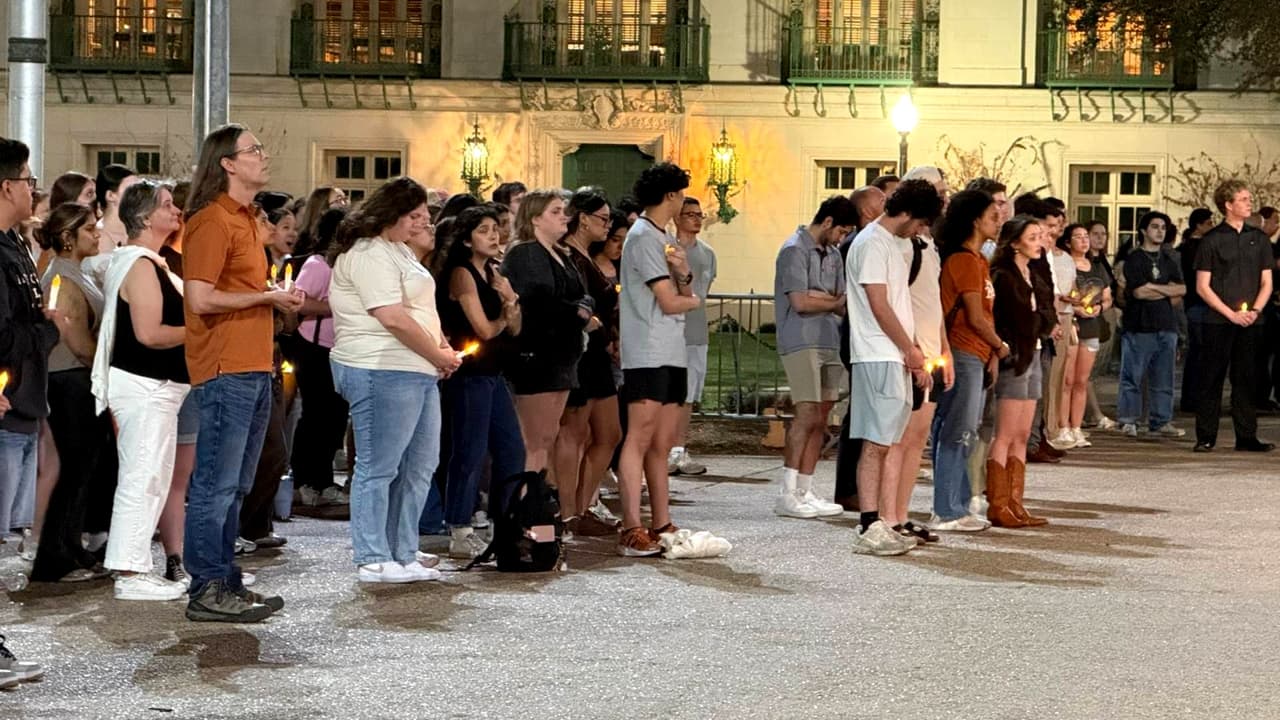 En un ambiente triste y solemne, se llevó a cabo una ceremonia en la torre del reloj de la Universidad de Texas para rendir homenaje a las víctimas del pasado tiroteo en la calle 6.