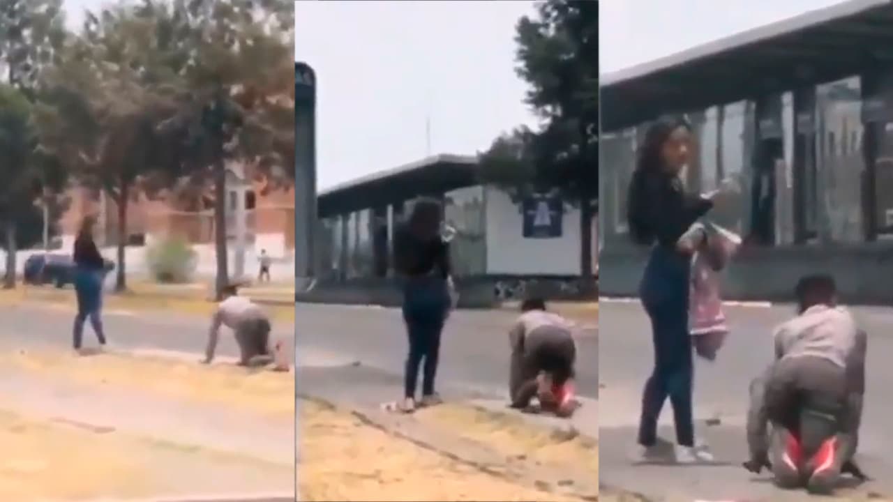 (VIDEO) Mujer hace gatear a su novio en la calle como castigo por ser infiel
