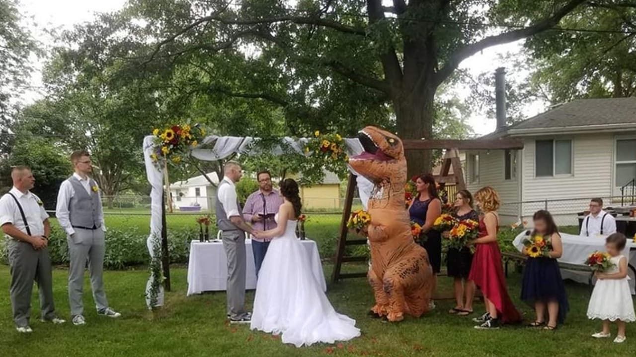 Dama de honor se vistió de T-Rex para la boda de su hermana