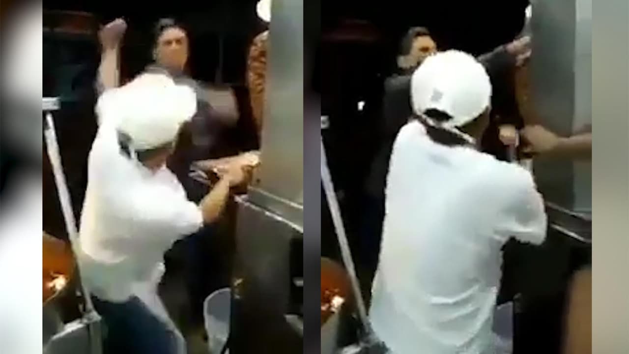 Hombre borracho ataca violentamente a taquero y le tira su comida al piso