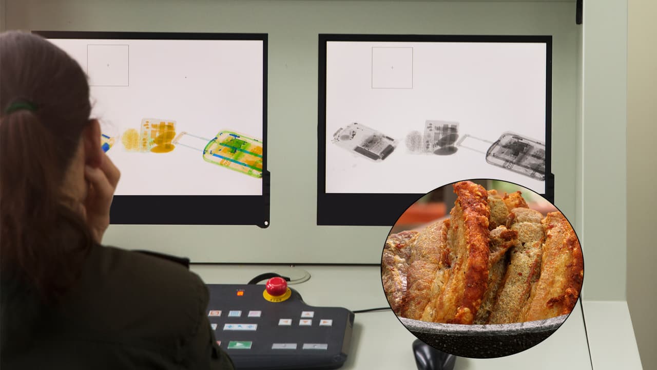 En un aeropuerto de Panamá, las autoridades le confiscaron entre sus pertenencias un kilo de chicharrón, y embutido de cerdo. Descarga gratis Uforia App.