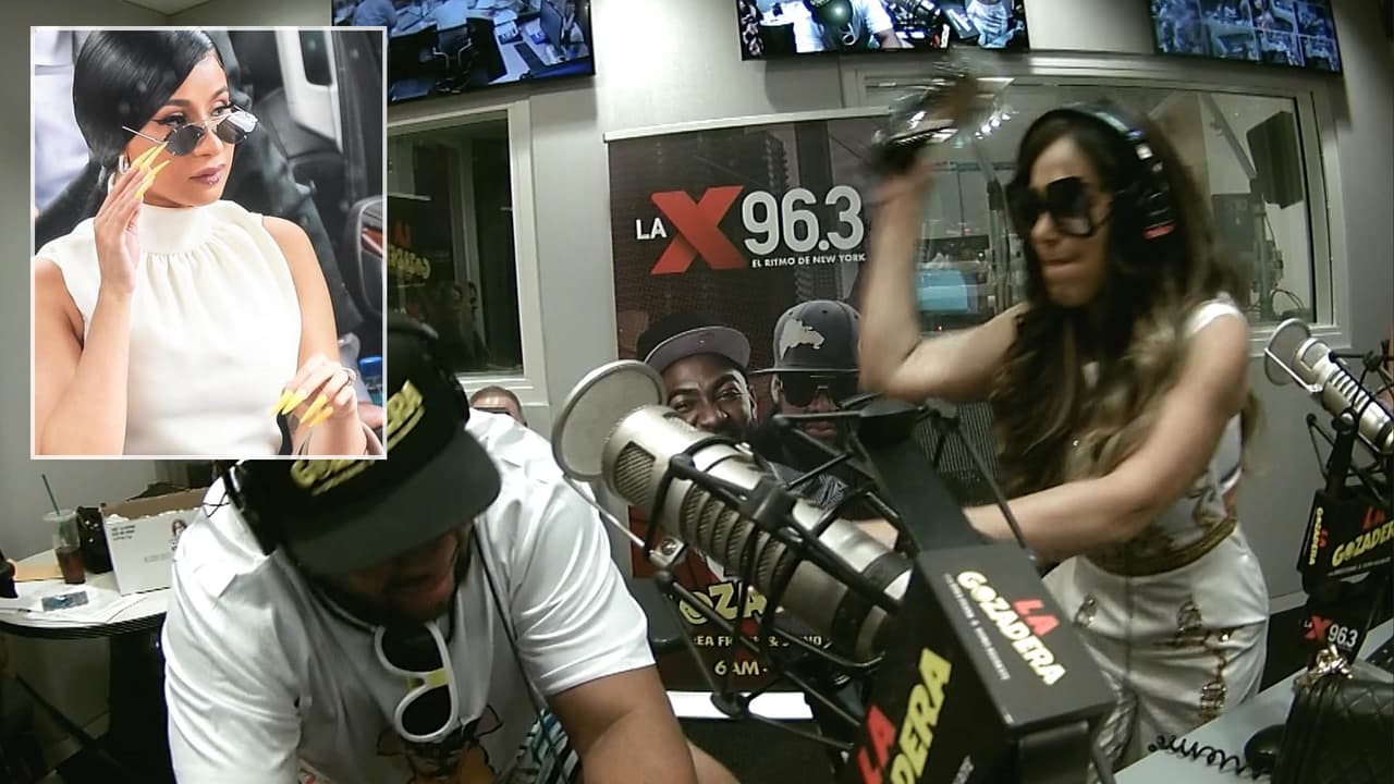 La reportera visitó la cabina de La Gozadera New York, un día después que la cantante se disculpara por sus acciones.