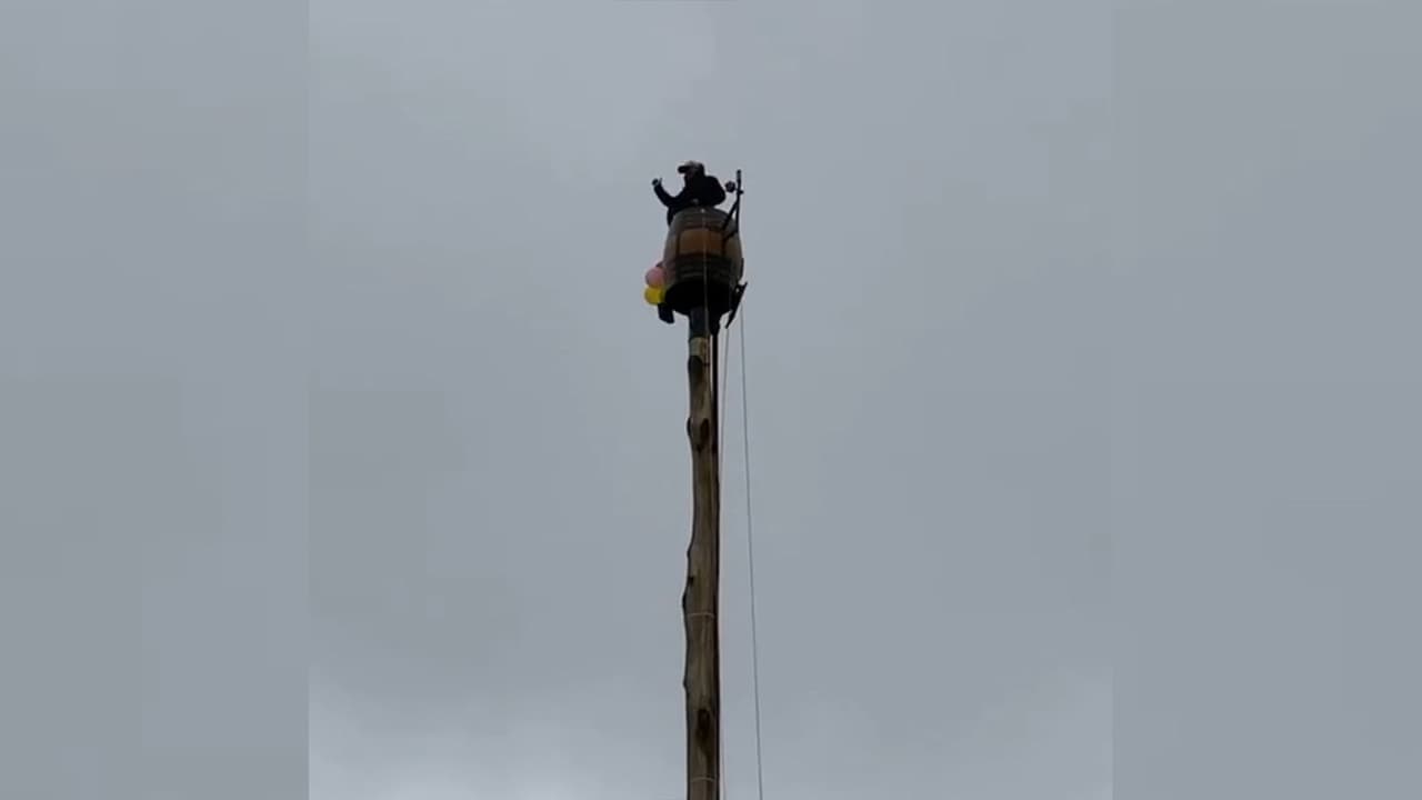 Un hombre vivió 67 días en un barril suspendido a 25 metros de altura