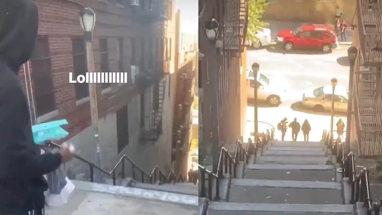 (VIDEO) Joven de El Bronx le entra a ‘huevazos’ a turistas en escaleras que se hicieron famosas por película de El Joker