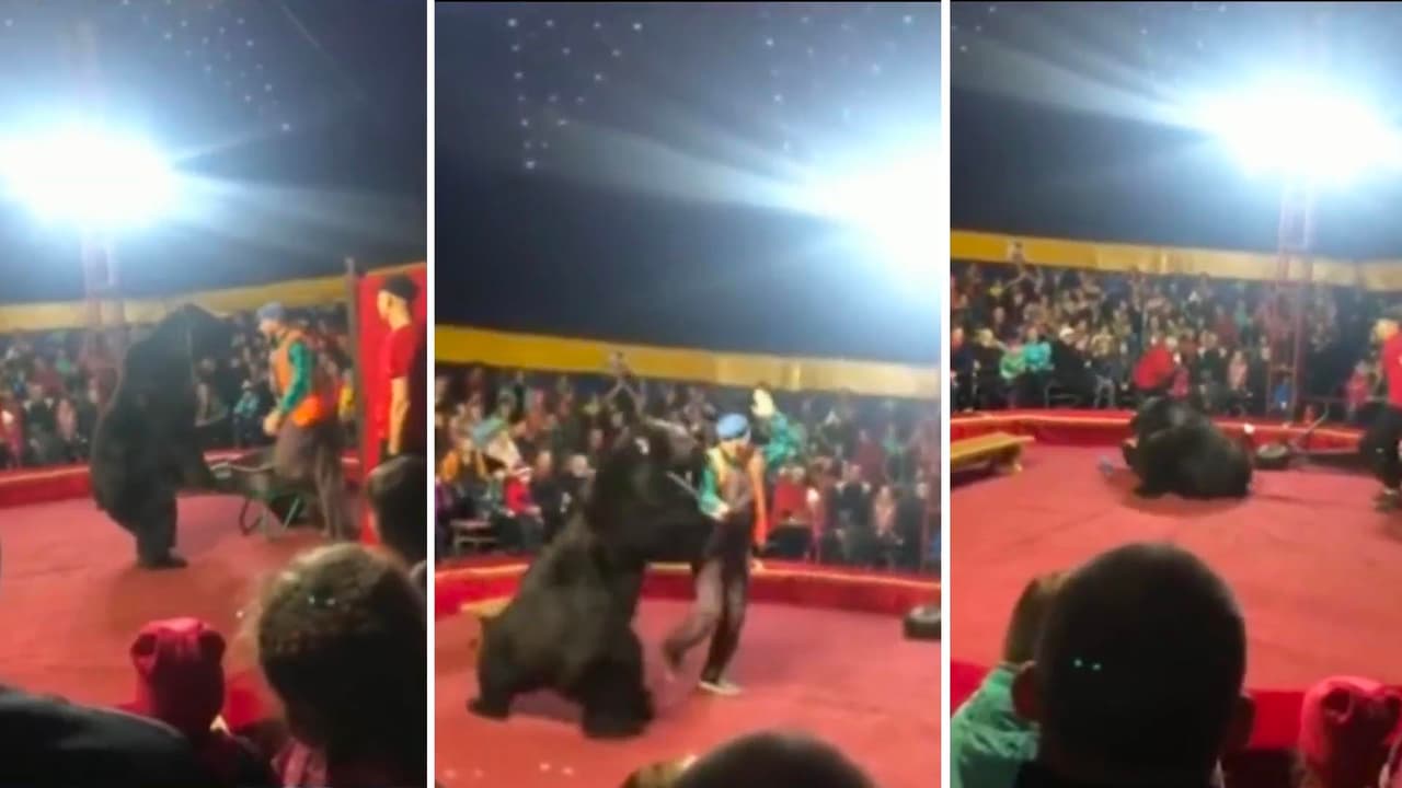 (VIDEO) Oso se rebeló ante su domador y lo atacó violentamente en plena función