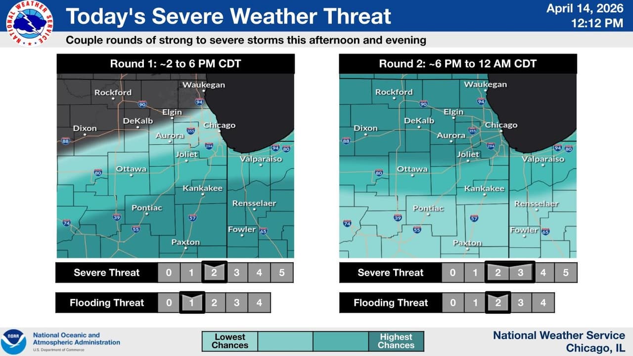 Autoridades meteorológicas advierten que, desde la tarde de este martes 14 de abril, el área de Chicago podría enfrenta condiciones propicias para tormentas severas que podrían intensificarse rápidamente y prolongarse hasta el miércoles.