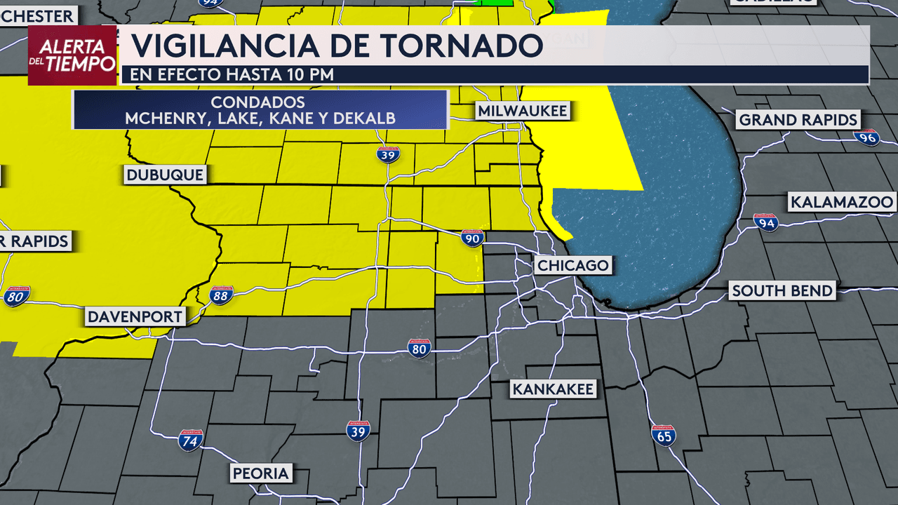 💧NWS DE Chicago emitió una * Vigilancia por Tornado* para los condados de McHenry, Lake, Kane y Dekalb, que estará vigente hasta las 10:00 pm del Martes