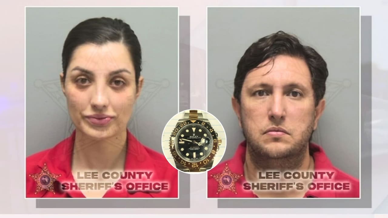 La pareja de joyeros fue detenida en Cape Coral, después de que la víctima denunciara que le habían vendido varios relojes marca Rolex falsificados. Se dio cuenta de que estos no eran reales cuando después de meterse a una piscina notó que a uno se le filtraba el agua.