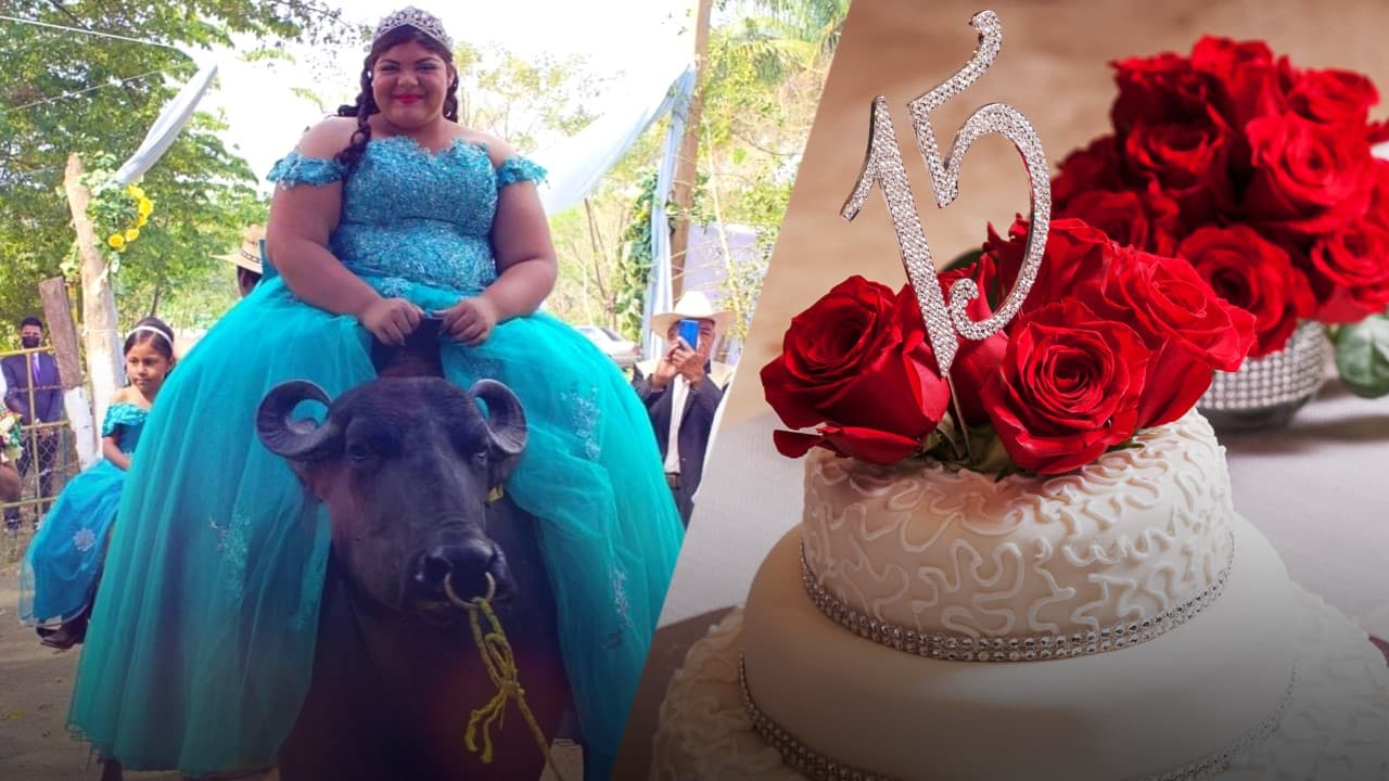 Quinceañera llega sobre un búfalo a su fiesta en Veracruz
