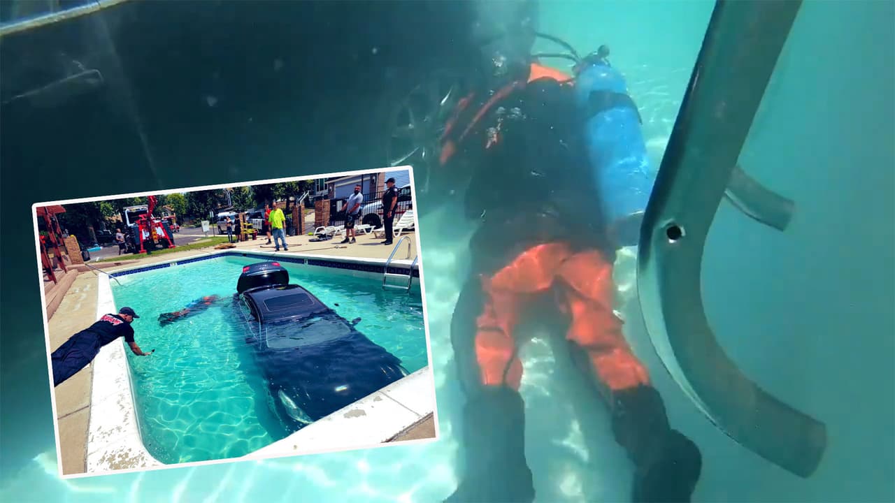 Las autoridades publicaron en sus redes como lograron sacar el auto que el adolescente sumergió en la piscina.