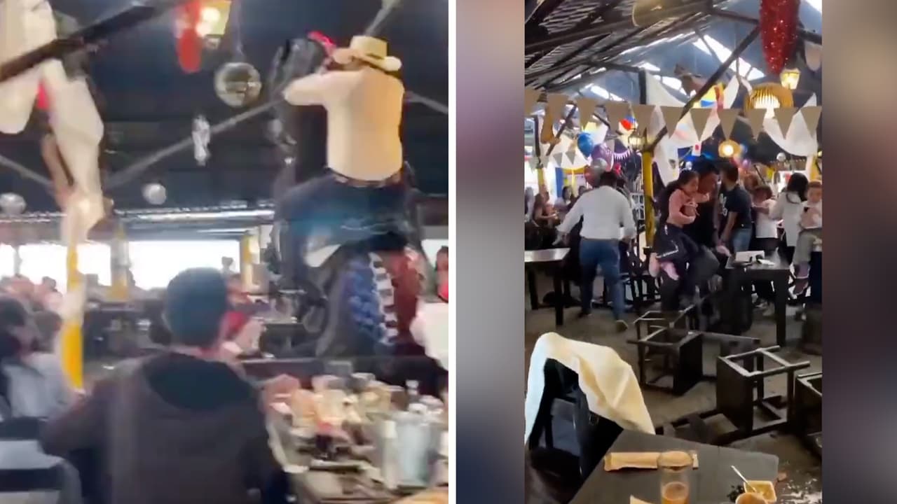 (VIDEO) Caballo cae sobre mesa de un restaurante mientras se realizaba un show