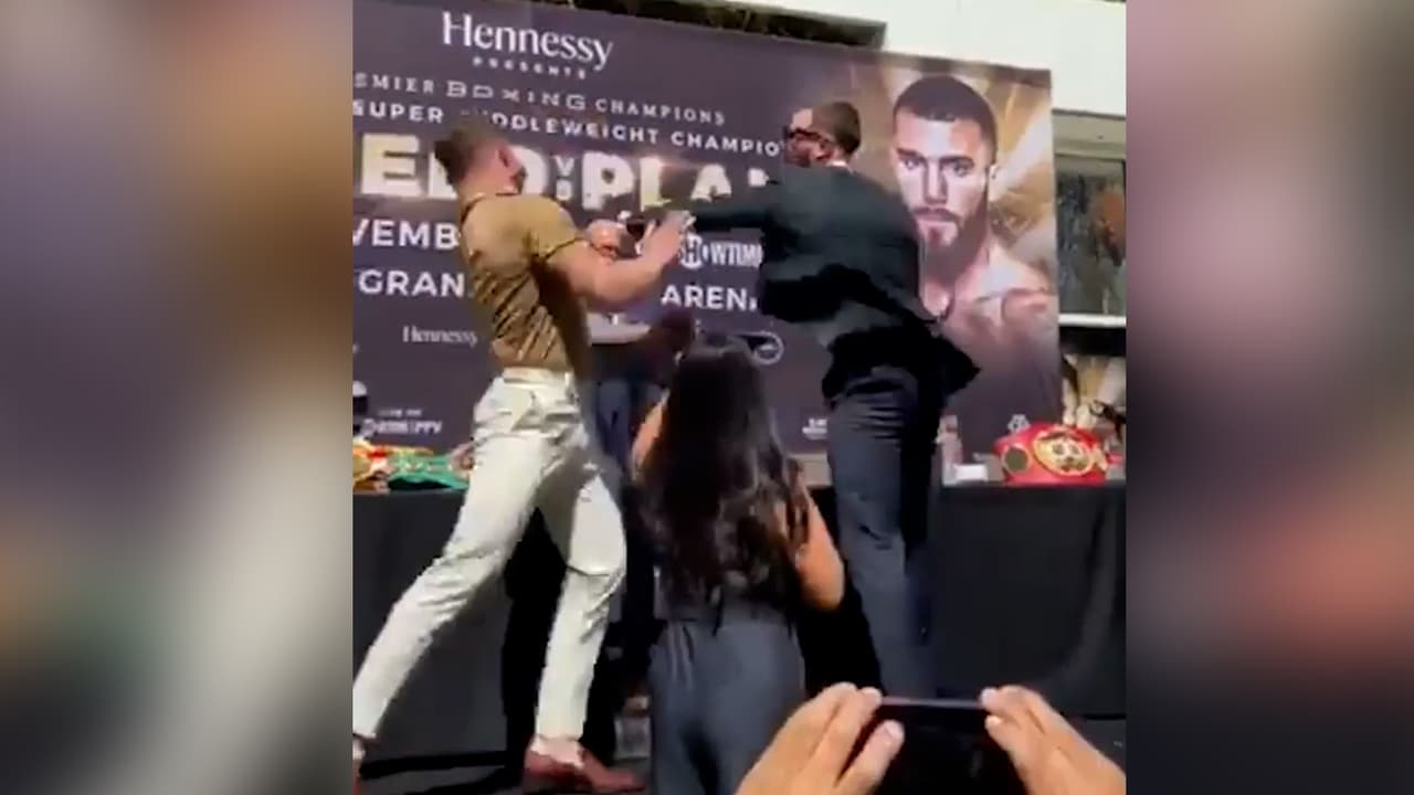 (VIDEO) ‘Canelo’ y Plant se van a los golpes en plena conferencia de prensa antes de su pelea