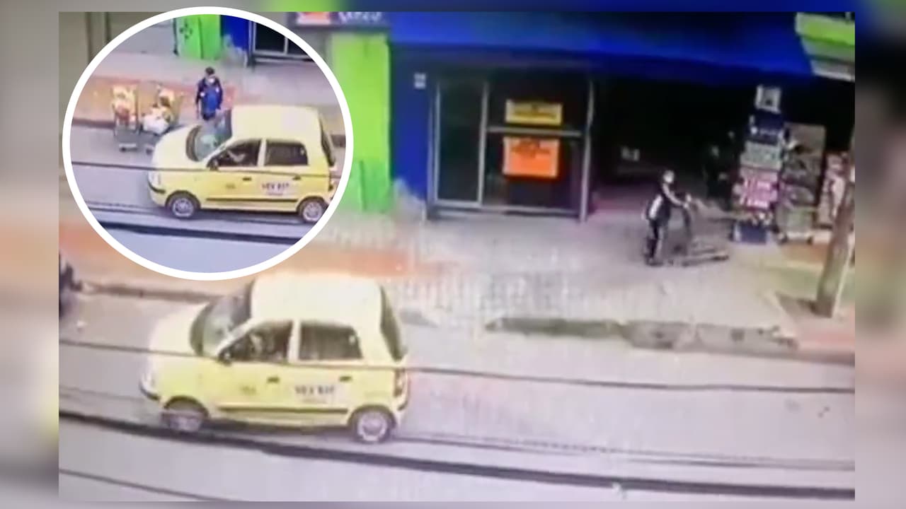 (Video) Captan a taxista robar las compras del supermercado de adulto mayor que fue a recoger