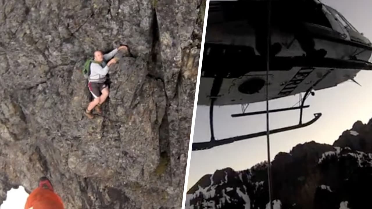 (Video) Captan rescate de película de hombre que quedo varado escalando una montaña