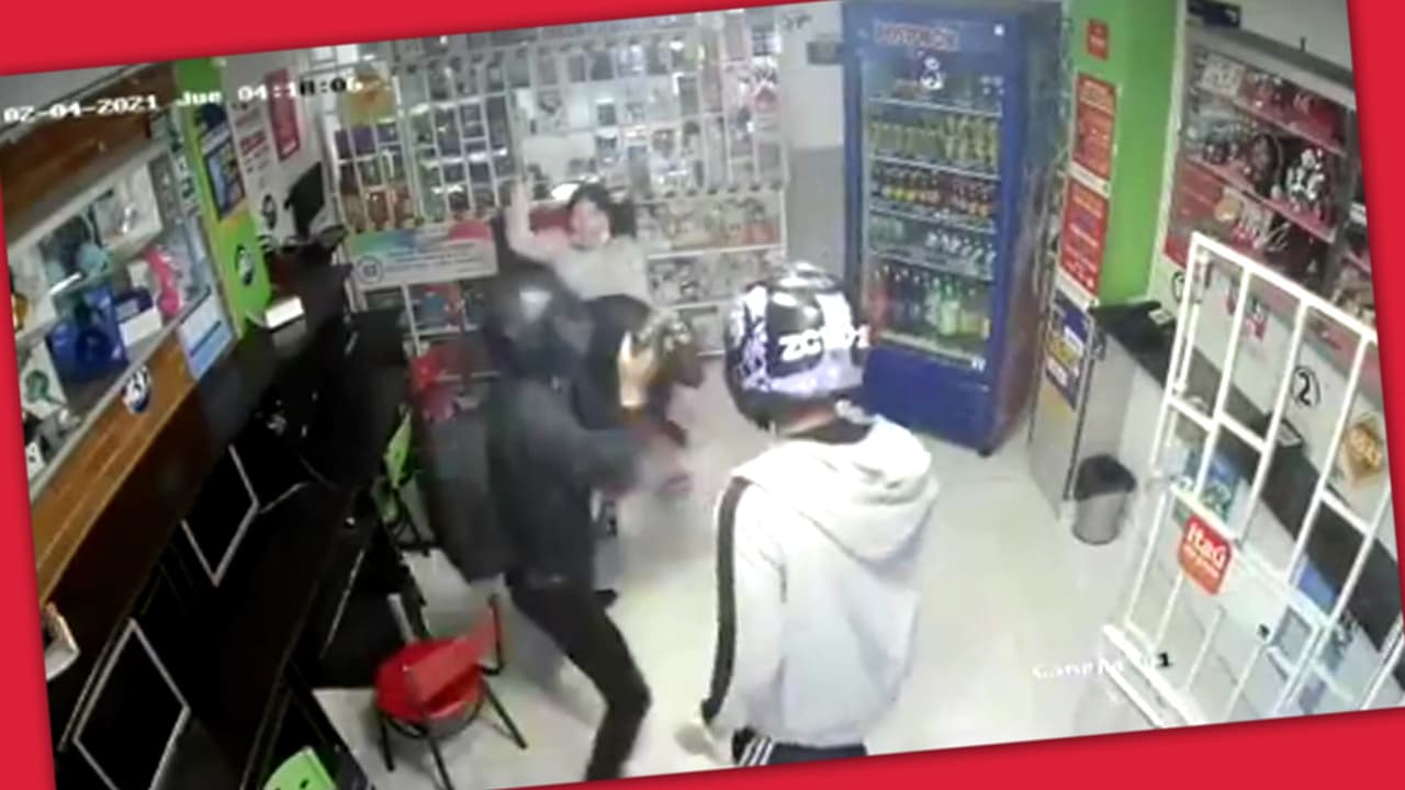 Las cámaras de seguridad, registraron el momento en que la menor pelea con los ladrones y aunque su madre resultó herida por uno de los delincuentes, logra frustrar el robo.