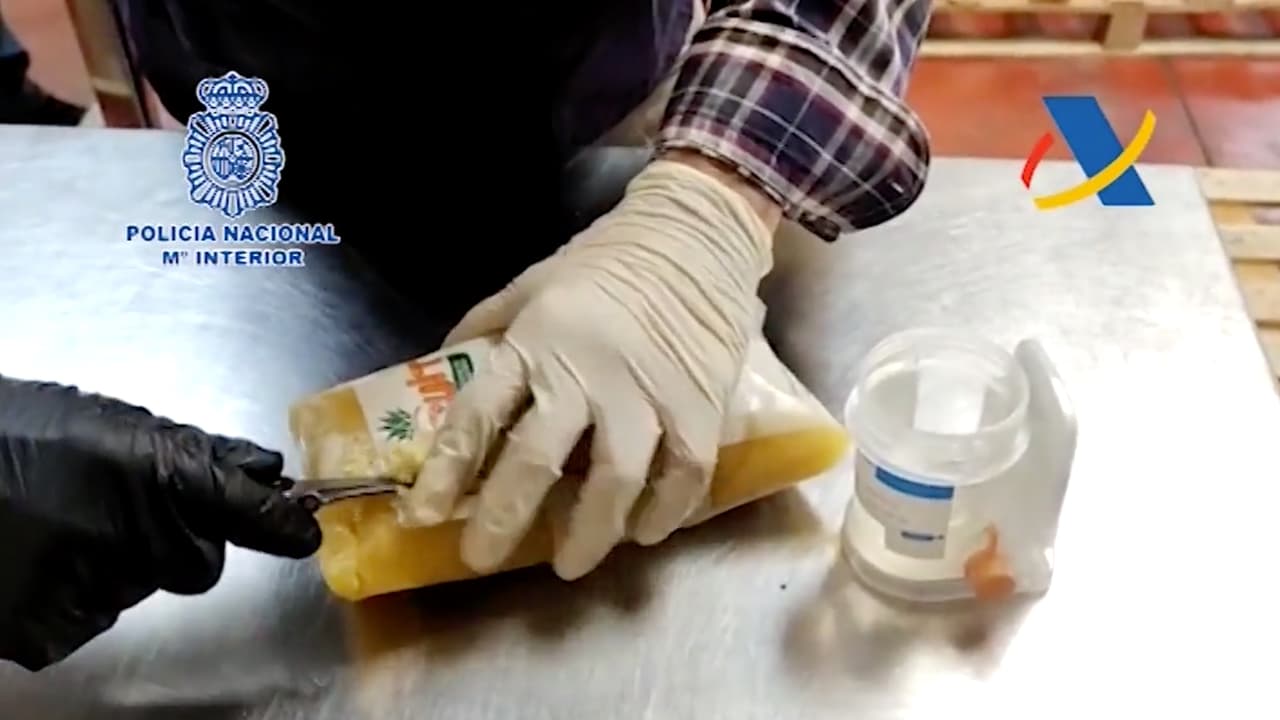 Las autoridades españolas detuvieron a dos personas que intentaban introducir al país casi una tonelada de droga dentro de paquetes de fruta.
