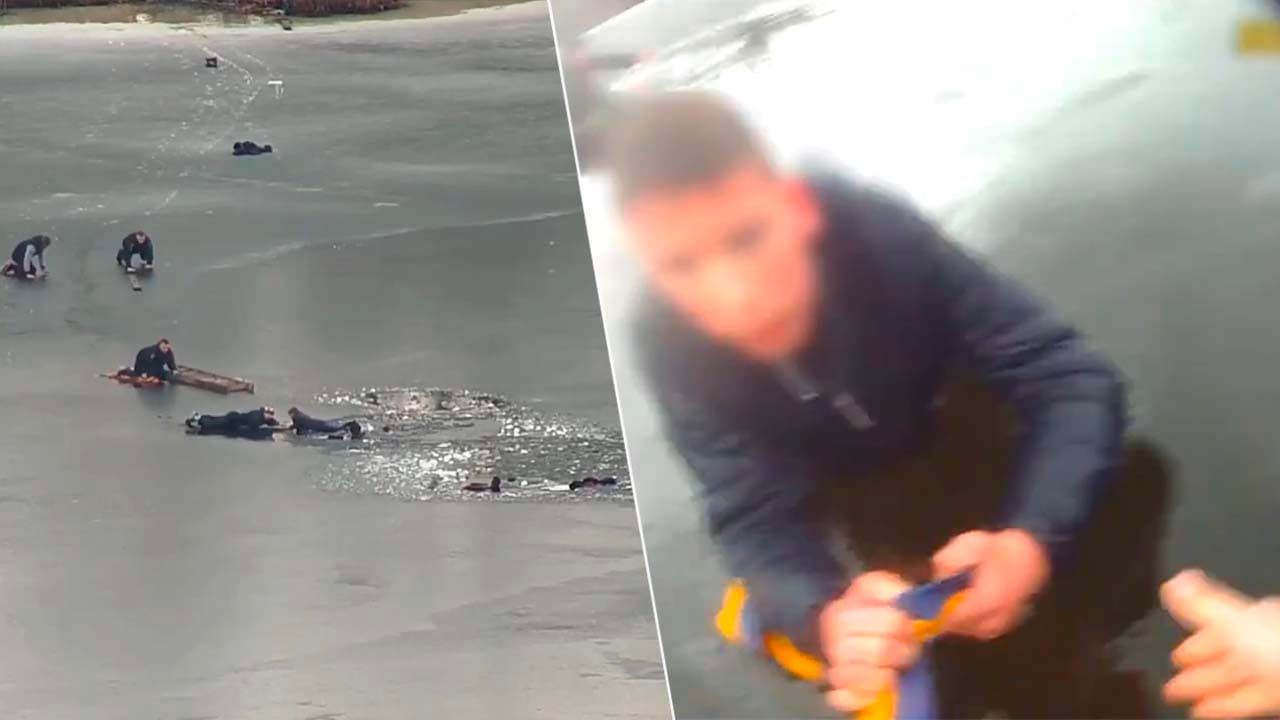 (VIDEO) En un heroico rescate, policías salvaron a cuatro hombres de morir tras caer bajo el hielo en un lago congelado