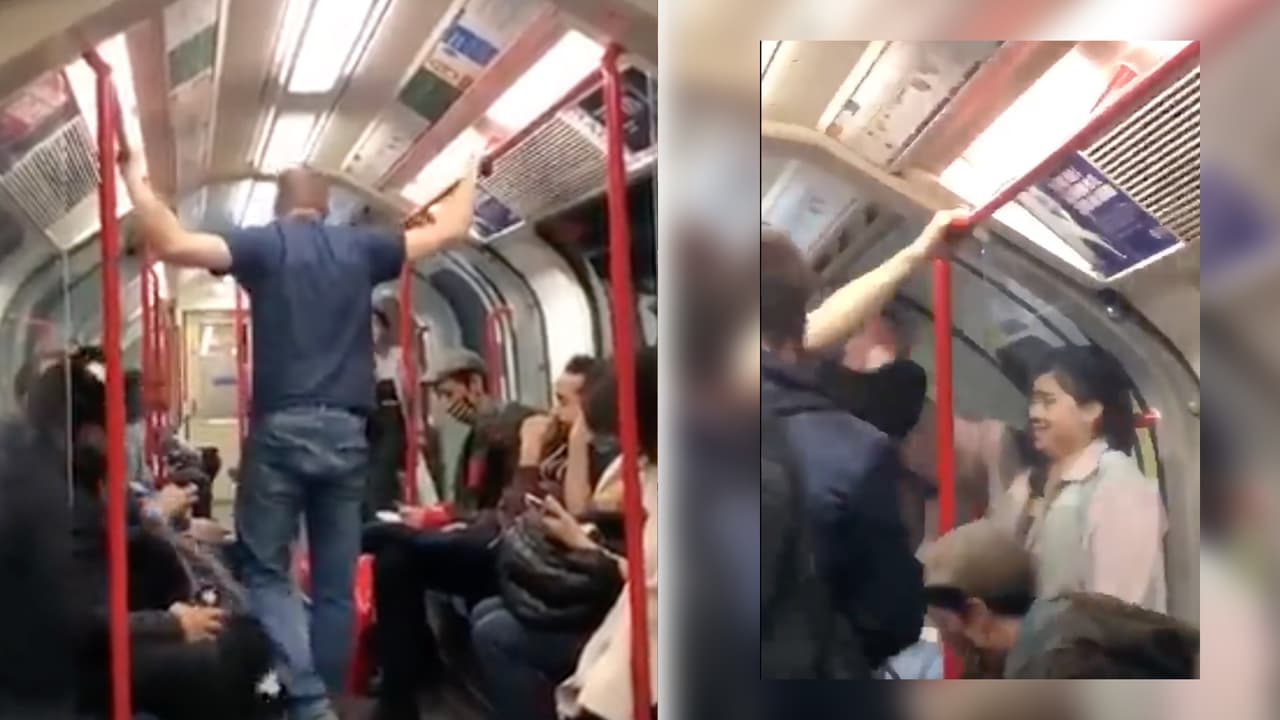 Varios pasajeros que circulaban en la línea Eastbound Central del metro de Londres, evitaron que un sujeto golpeara a una mujer asiática.