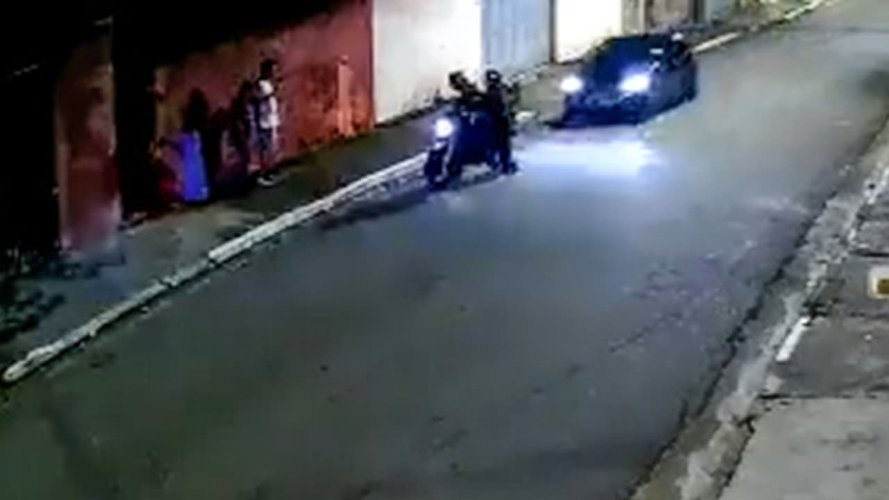Una cámara de seguridad captó el momento en el que unos jóvenes son atracados por delincuentes motorizados en Brasil, que fueron defendidos por un familiar.