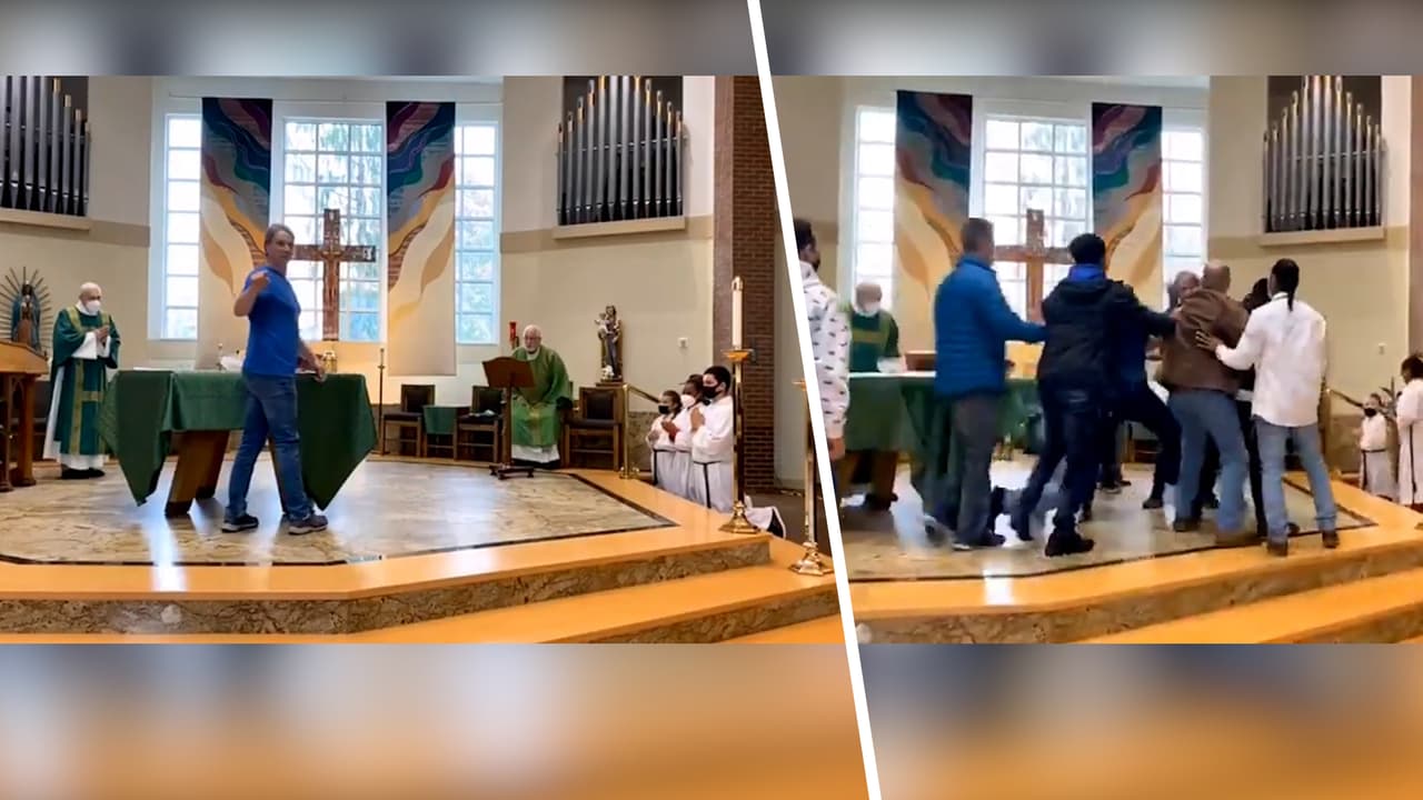 (VIDEO) Hombre pelea contra 20 feligreses tras rehusarse a usar la mascarilla dentro de la Iglesia
