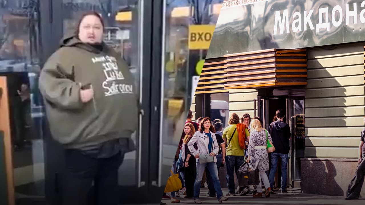 VIDEO: Hombre se encadena a las puertas de McDonald para protestar la salida del restaurante de Rusia