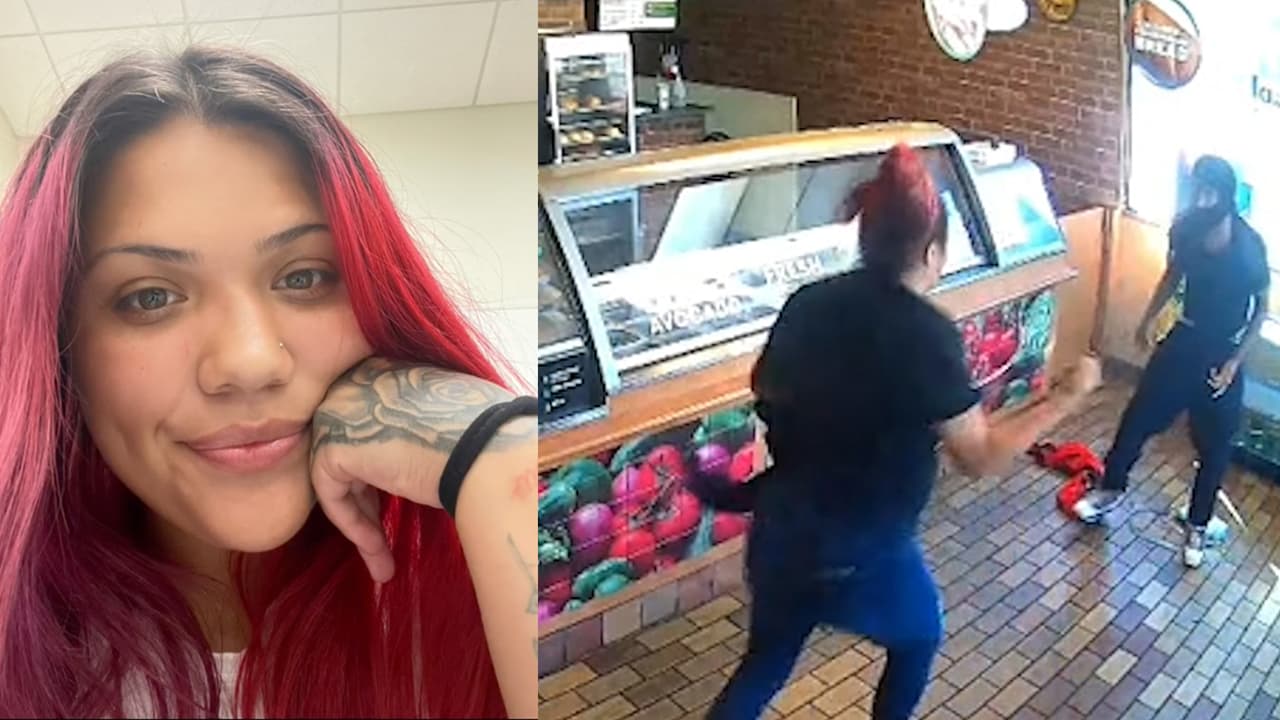 Araceli Sotelo trabajaba sola en el restaurante Subway, cuando un hombre armado cruzó el mostrador para llevarse el dinero.