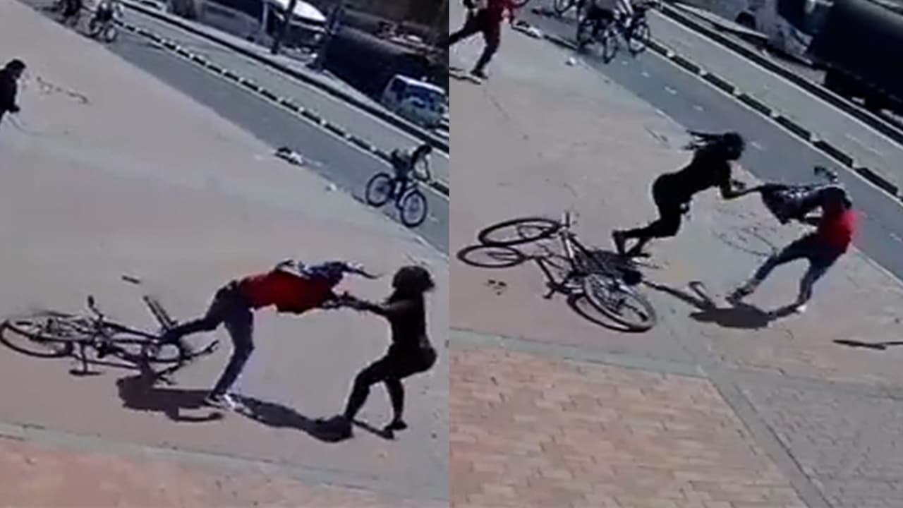 VIDEO: Mujer le quita la ropa y la bicicleta al ladrón que le trató de robar el celular